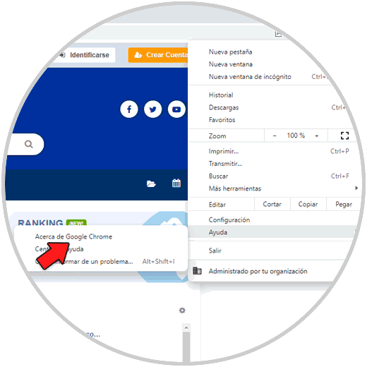 Para actualizar Chrome, abrimos Chrome e iremos al menú "Personalizar y controlar Google Chrome - Ayuda - Acerca de Google Chrome":