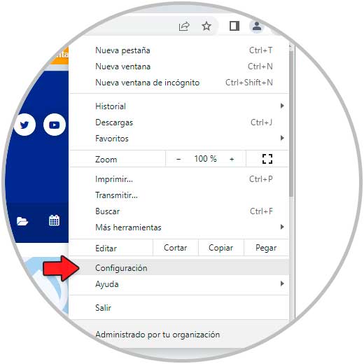 Luego abrimos Chrome y vamos a "Personalizar y controlar Google Chrome - Configuración":