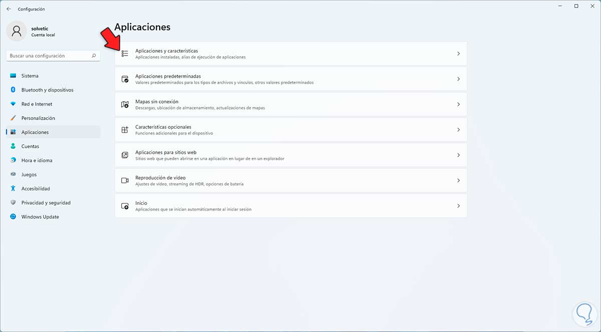 Ahora vamos a “Aplicaciones - Aplicaciones y características”: