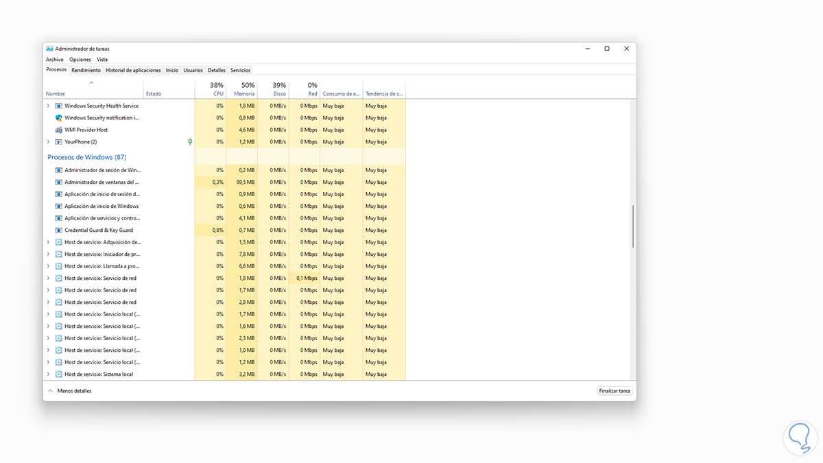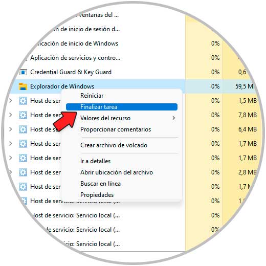 Damos clic derecho sobre "Explorador de Windows" y seleccionamos la opción "Finalizar tarea":