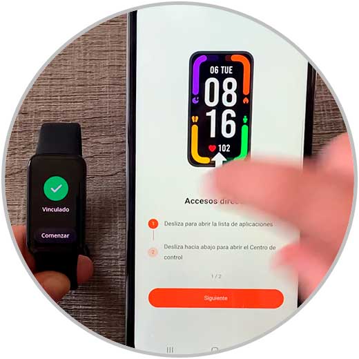 Debes pulsar siguiente para ver en el móvil verás que ya está vinculado.