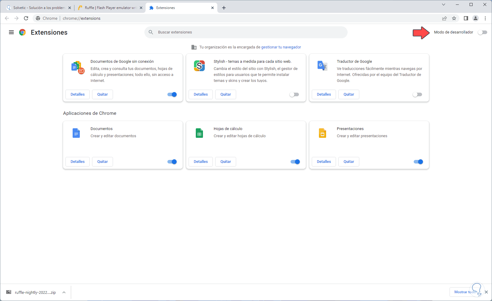Activamos el interruptor "Modo de desarrollador":