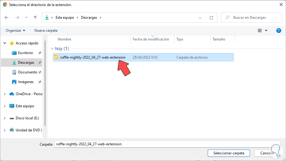 Damos clic en "Cargar descomprimida" y seleccionamos la carpeta que se ha extraído: