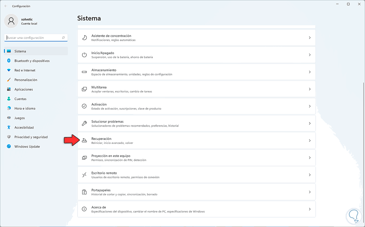 Vamos a “Solucionar problemas” y luego damos clic en “Opciones avanzadas”: