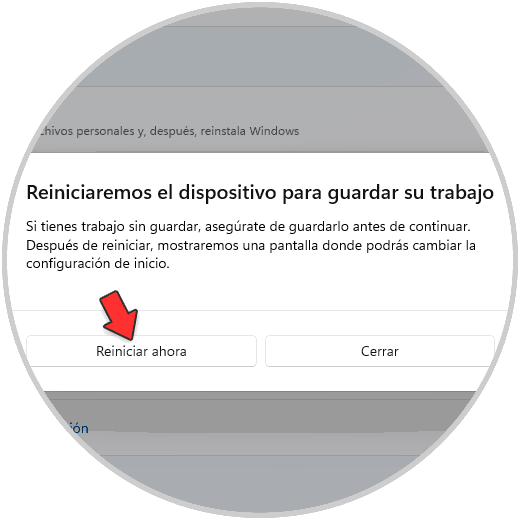 Al dar clic en “Reiniciar ahora” Windows 11 se reiniciara: