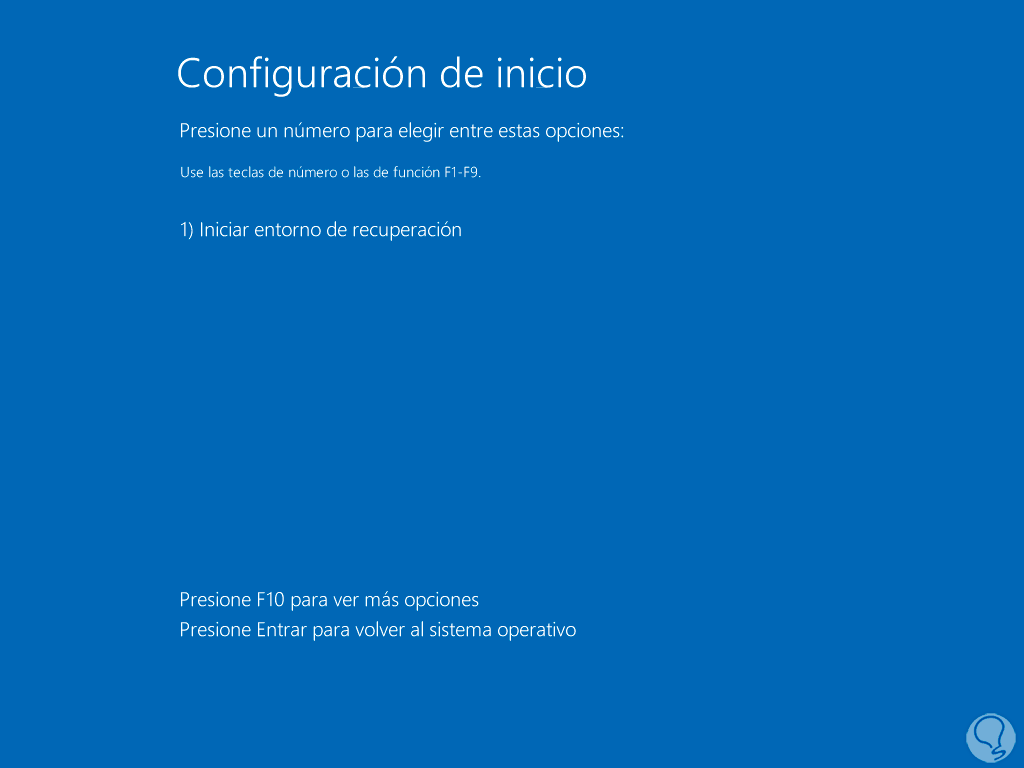 Pulsamos la tecla 1 para acceder al entorno de recuperación en Windows 11: