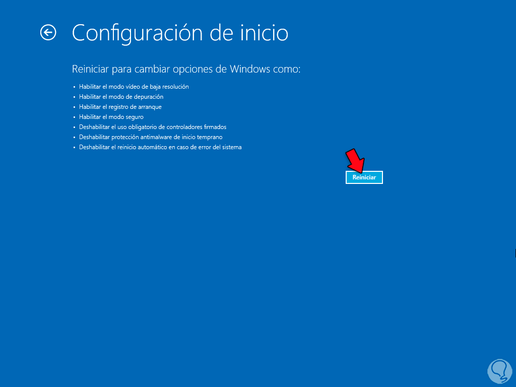 Damos clic en "Reiniciar" y ahora será desplegado lo siguiente: