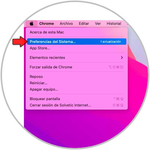 Damos clic en el menú de Apple y allí seleccionamos la opción "Preferencias del sistema":