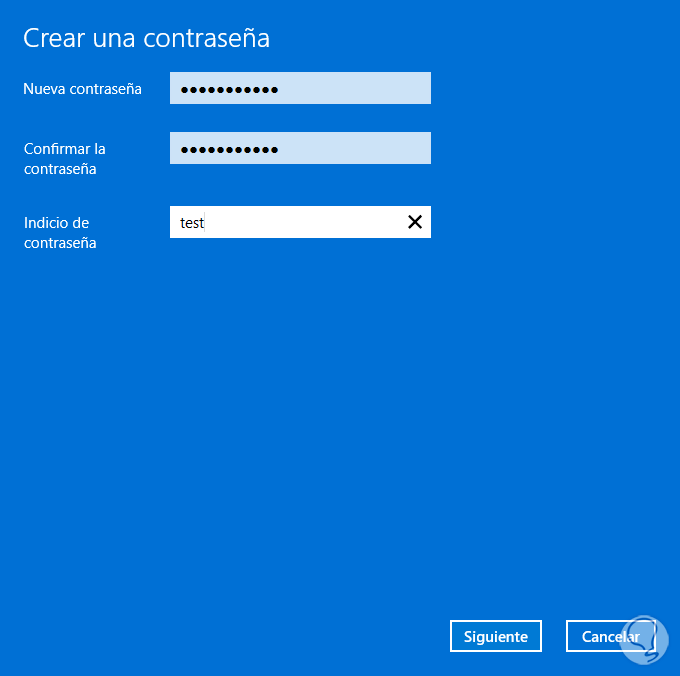 Y en la ventana emergente asignamos la contraseña deseada: