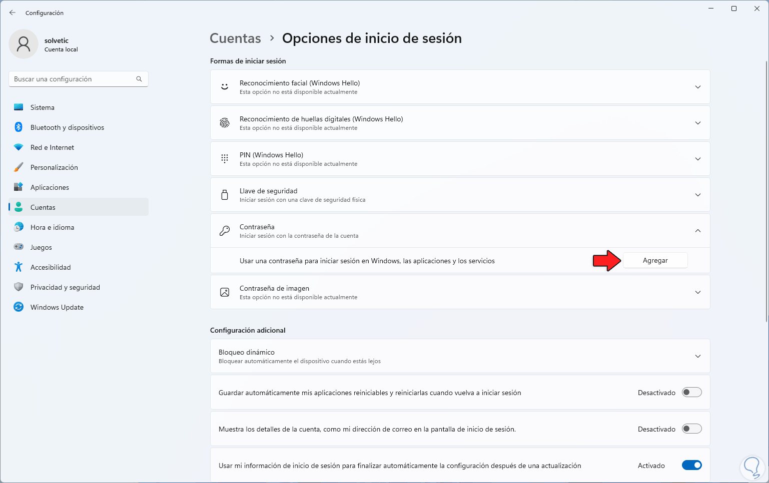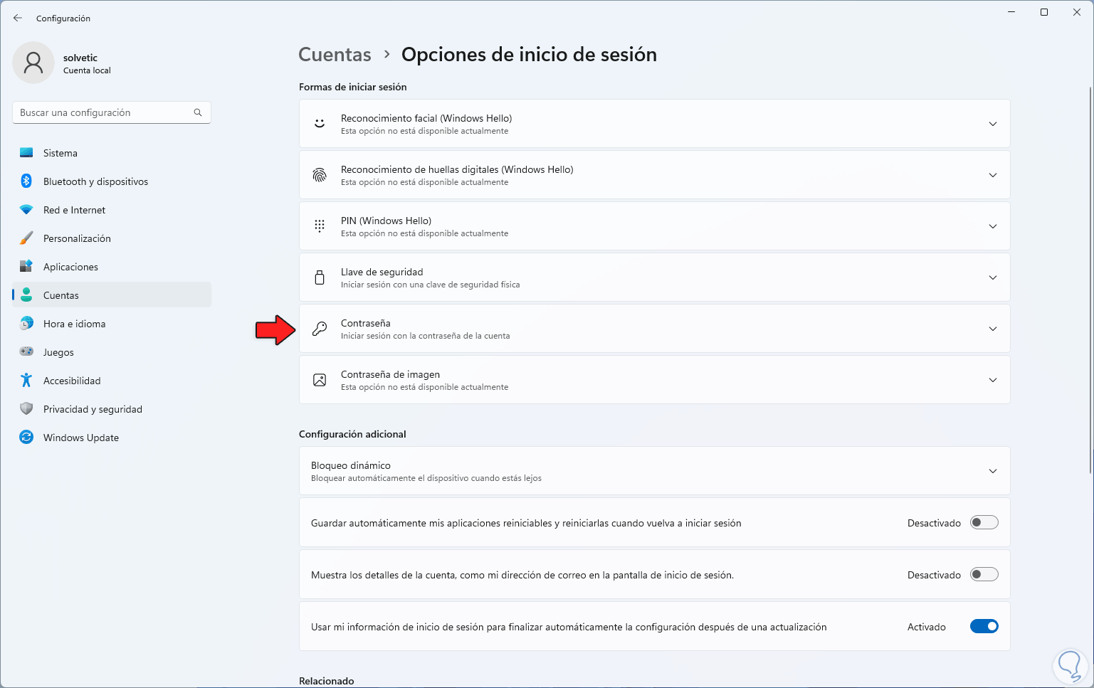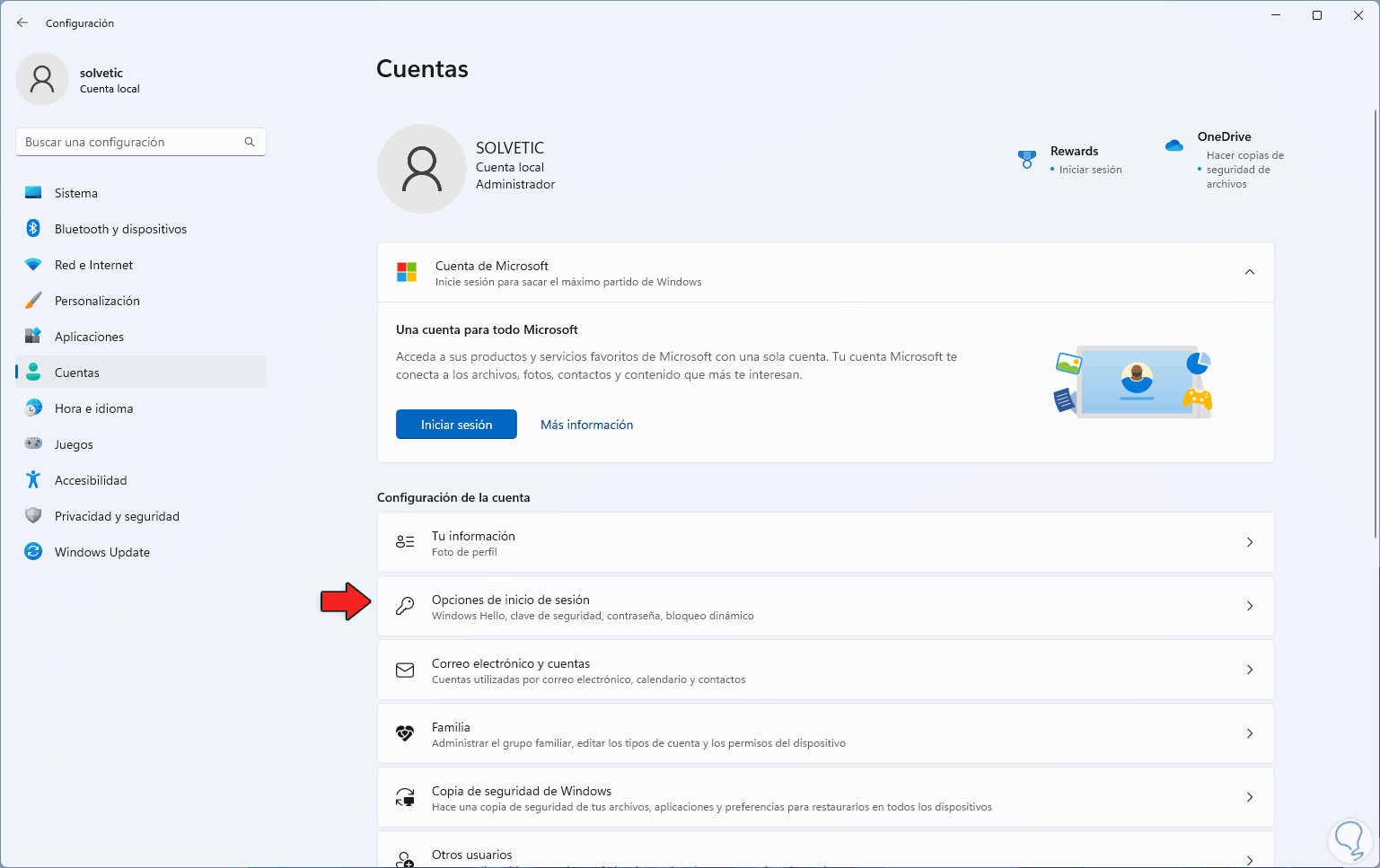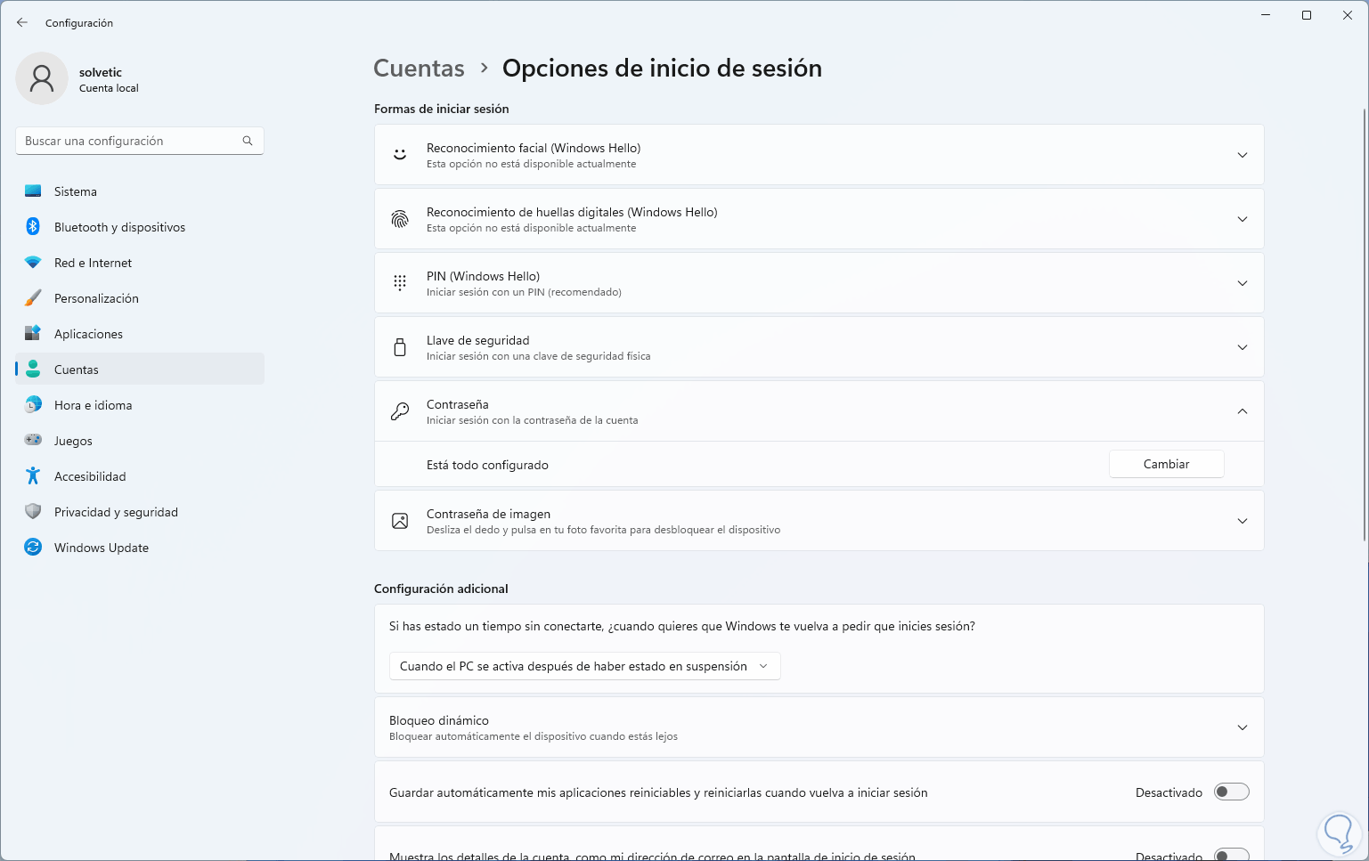 Ahora vamos a “Cuentas - Opciones de inicio de sesión”: