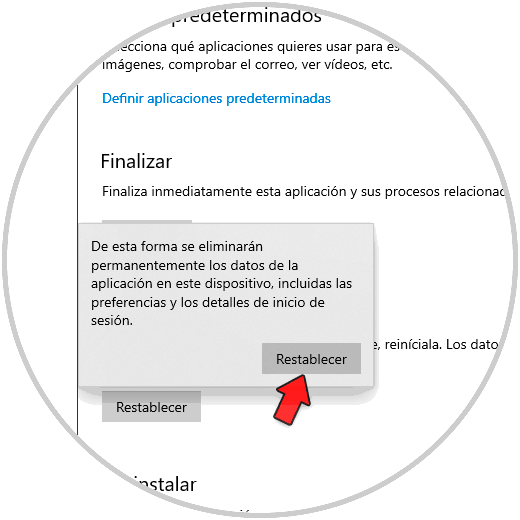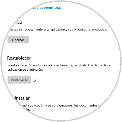Damos clic en "Restablecer" y veremos lo siguiente: