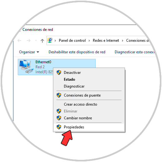 Seleccionamos "Ver conexiones de red", en la ventana desplegada damos clic derecho sobre el adaptador de red y seleccionamos "Propiedades":