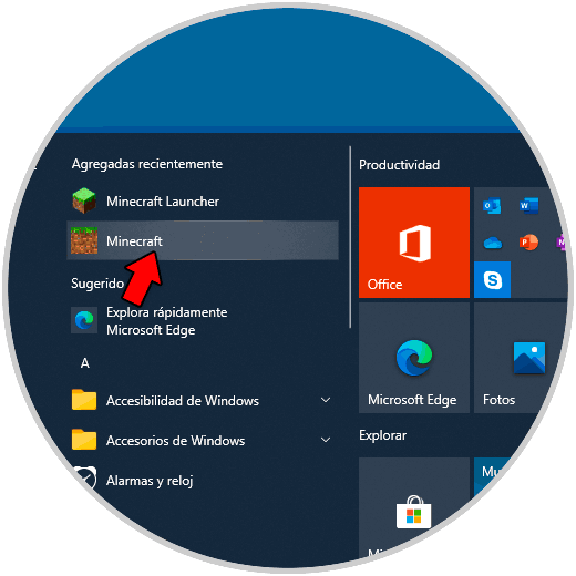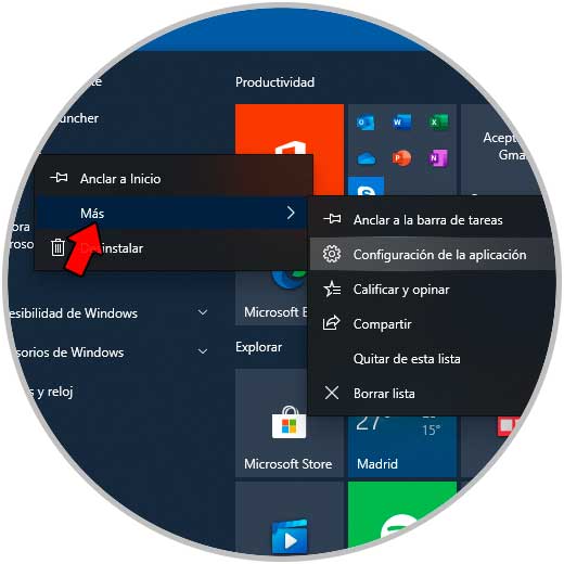 Finalmente, pulsamos el menú Inicio, damos clic derecho sobre Minecraft y luego seleccionamos "Más - Configuración de aplicación":