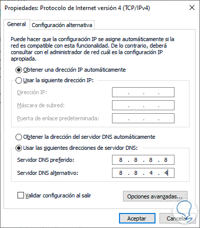 - En "Servidor DNS alternativo" ingresa 8.8.4.4