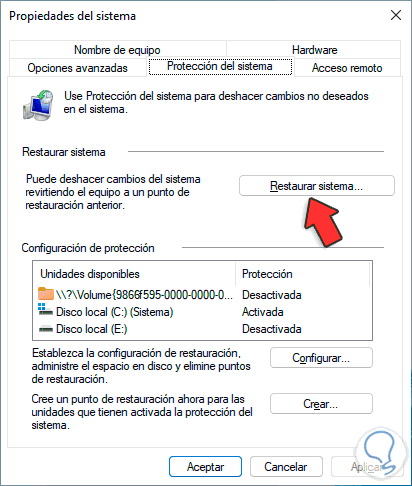 Este Dispositivo no Puede Iniciar Código 10 Windows 11 Solución restaurando el sistema