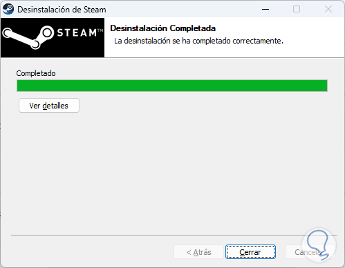 Cerramos el asistente y comprobamos que Steam se ha desinstalado correctamente: