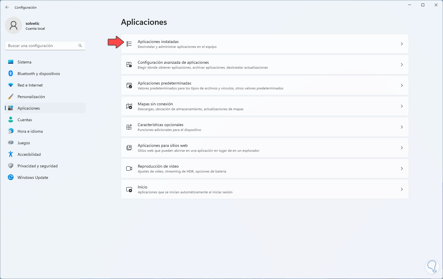 Iremos a “Aplicaciones - Aplicaciones instaladas”:
