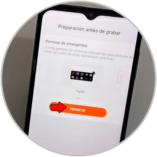 Tenemos una barra de acceso directos desde panel de notificaciones donde podemos iniciar la grabación. Después confirmamos iniciar la grabación y veremos que aparece un botón flotante que nos indica el inicio de grabación