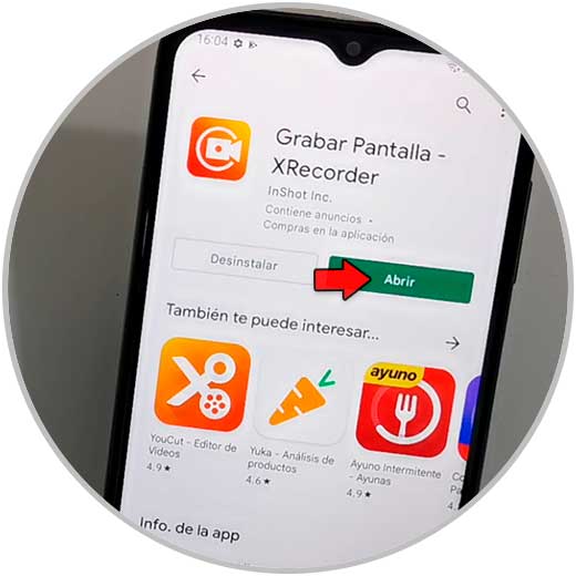 Vamos al Play Store y buscaremos una app de grabación. Nosotros hemos elegido XRecorder. La instalamos.