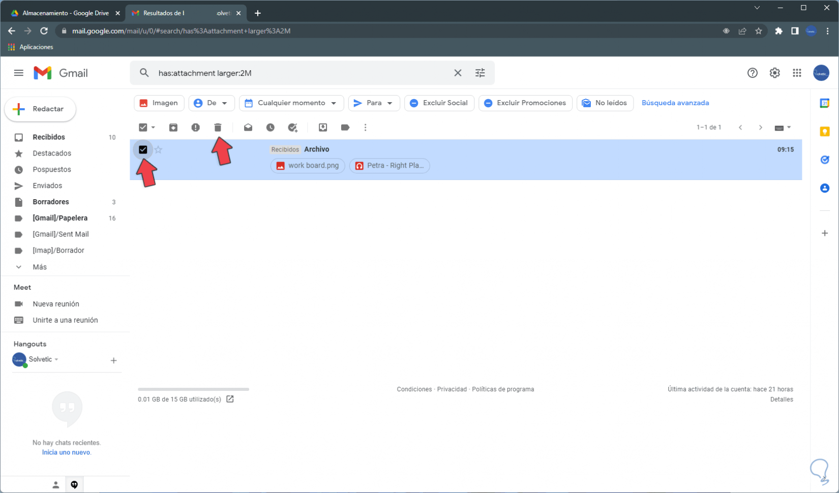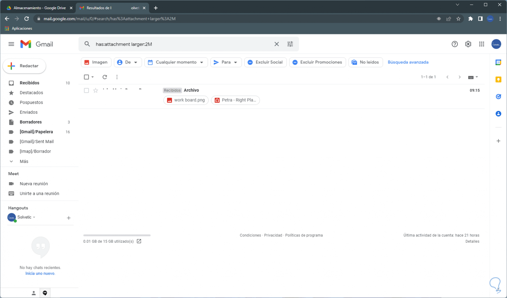 Ahora abrimos Gmail con el fin de validar los correos de un tamaño especifico, para ver esto, en el buscador ingresamos la sintaxis: Reemplazamos # por el valor mínimo en MB.
