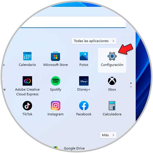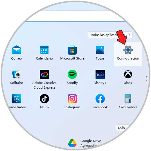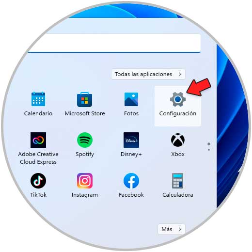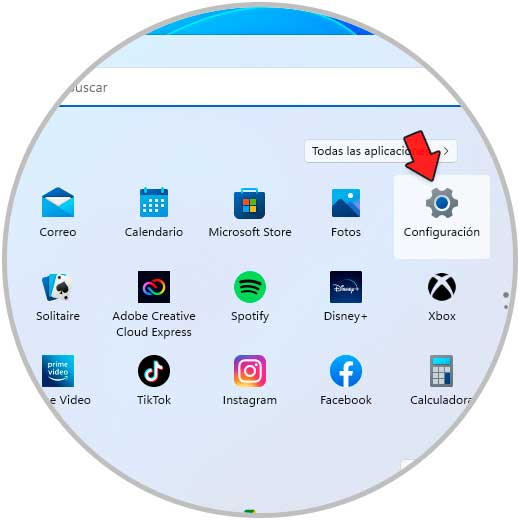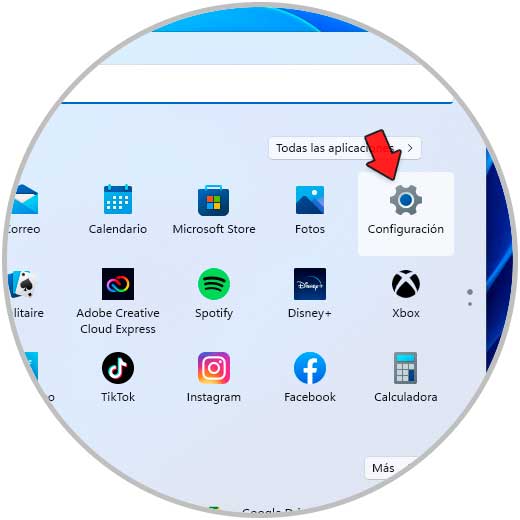 Para ello de nuevo vamos a “Inicio – Configuración”: