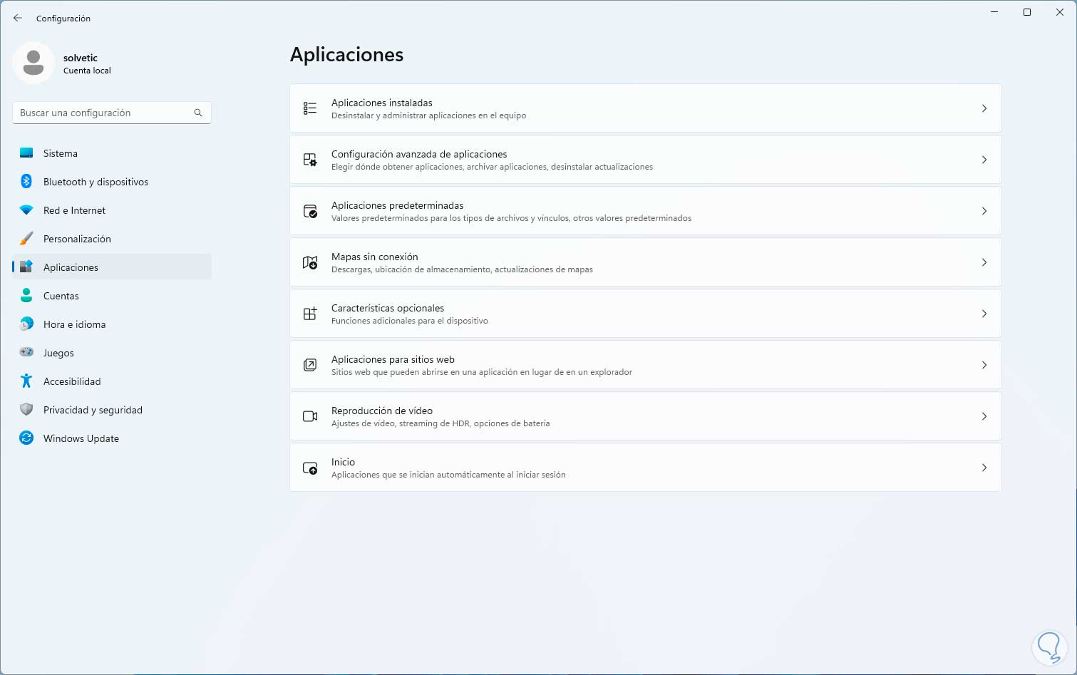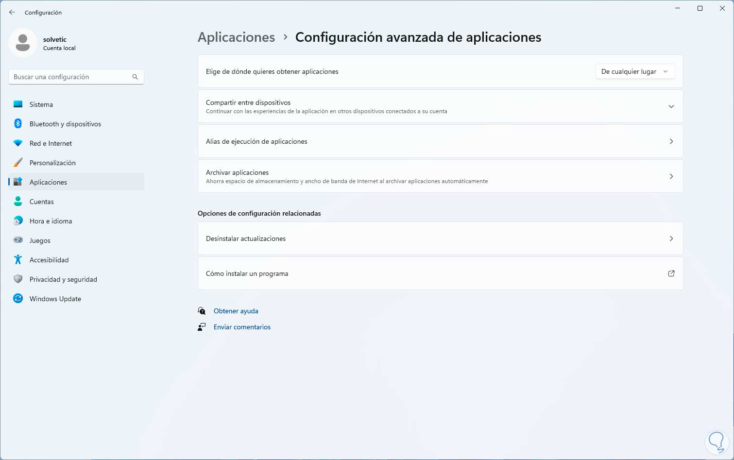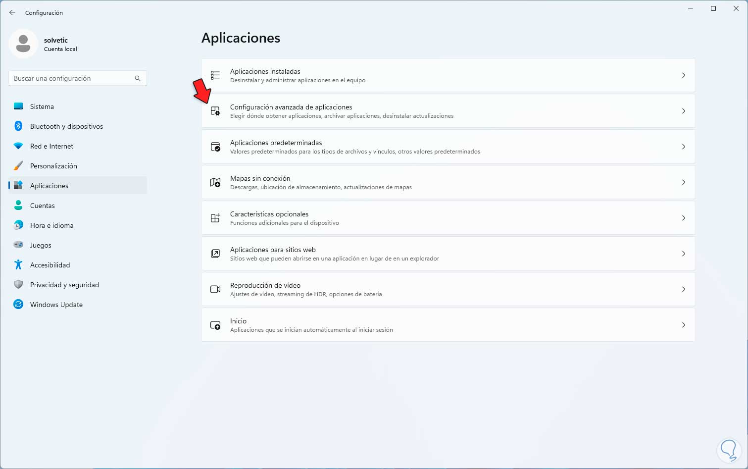 Ahora vamos a “Aplicaciones - Configuración avanzada de aplicaciones”: