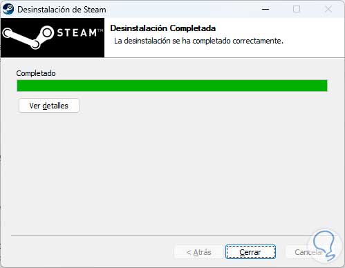 Damos clic en “Desinstalar” y esperamos que se llegue al final:
