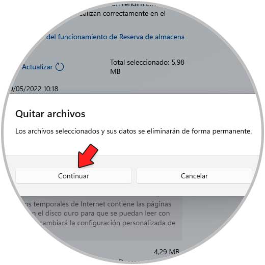 Damos clic en "Quitar archivos" y se desplegara el siguiente mensaje: