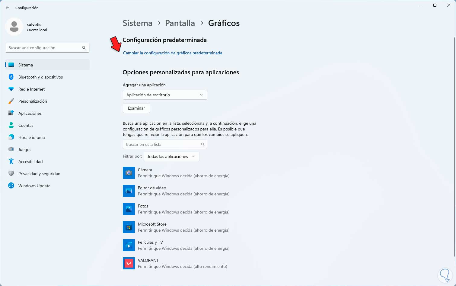 Damos clic en "Cambiar la configuración de gráficos predeterminados" para ver lo siguiente: