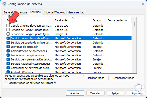 Desactivamos los servicios no esenciales los cuales pueden influir en la velocidad de arranque de Windows 11: