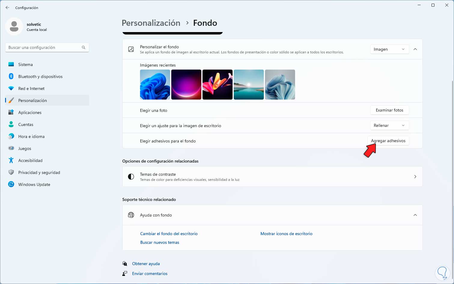 Para editarlo, en Fondo damos clic " Agregar adhesivos":