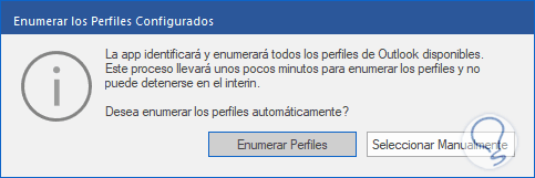 Allí es posible que de forma automática se detecten los perfiles de Outlook o bien podemos hacerlo de forma manual, el entorno de la app será el siguiente. Damos clic en “Seleccione Archivo de datos de Outlook”