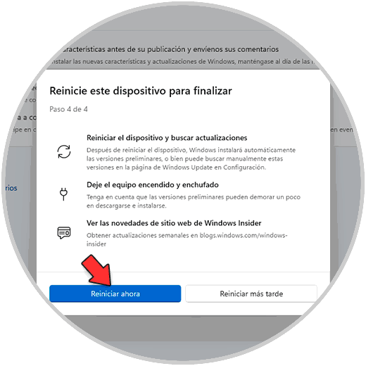 Damos clic en “Dejar de obtener versiones preliminares” y será desplegado lo siguiente: