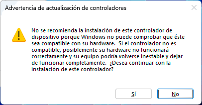 Si el método automático no funciona, podemos hacer uso de los controladores integrados en Windows 11 o bien descargar la versión mas reciente del sitio web del desarrollador.