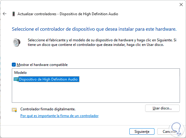 Damos clic en "Elegir en una lista de controladores disponibles en el equipo" para ver esto: