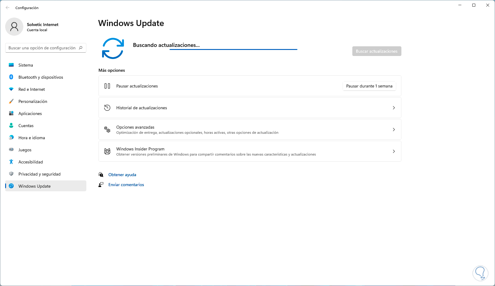 Damos clic en "Buscar controladores actualizados en Windows Update" para abrir Windows Update: