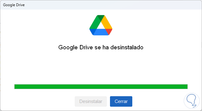 Al finalizar veremos lo siguiente. Con esto se ha desinstalado por completo Google Drive en Windows 11.