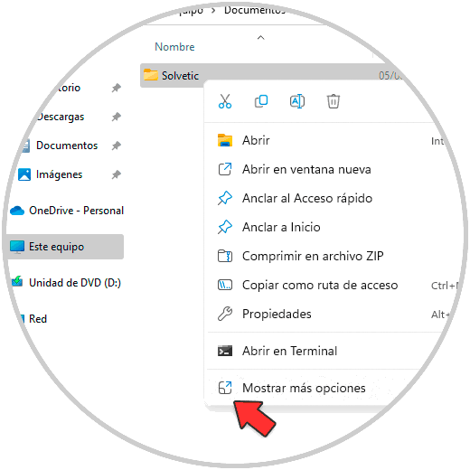 Para este caso damos clic derecho sobre la carpeta y vamos a “Mostrar más opciones”: