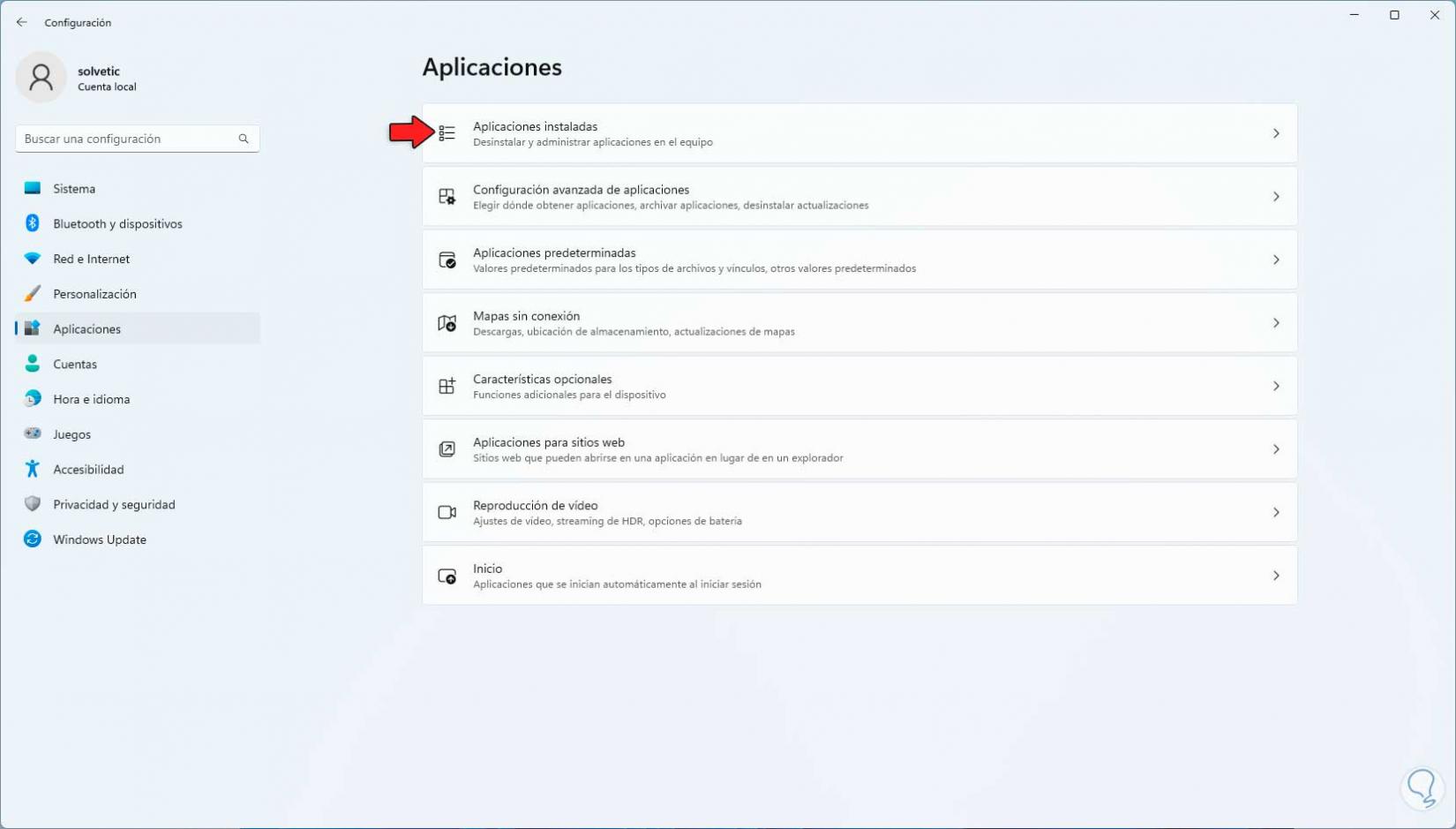 Ahora vamos a “Aplicaciones - Aplicaciones instaladas”: