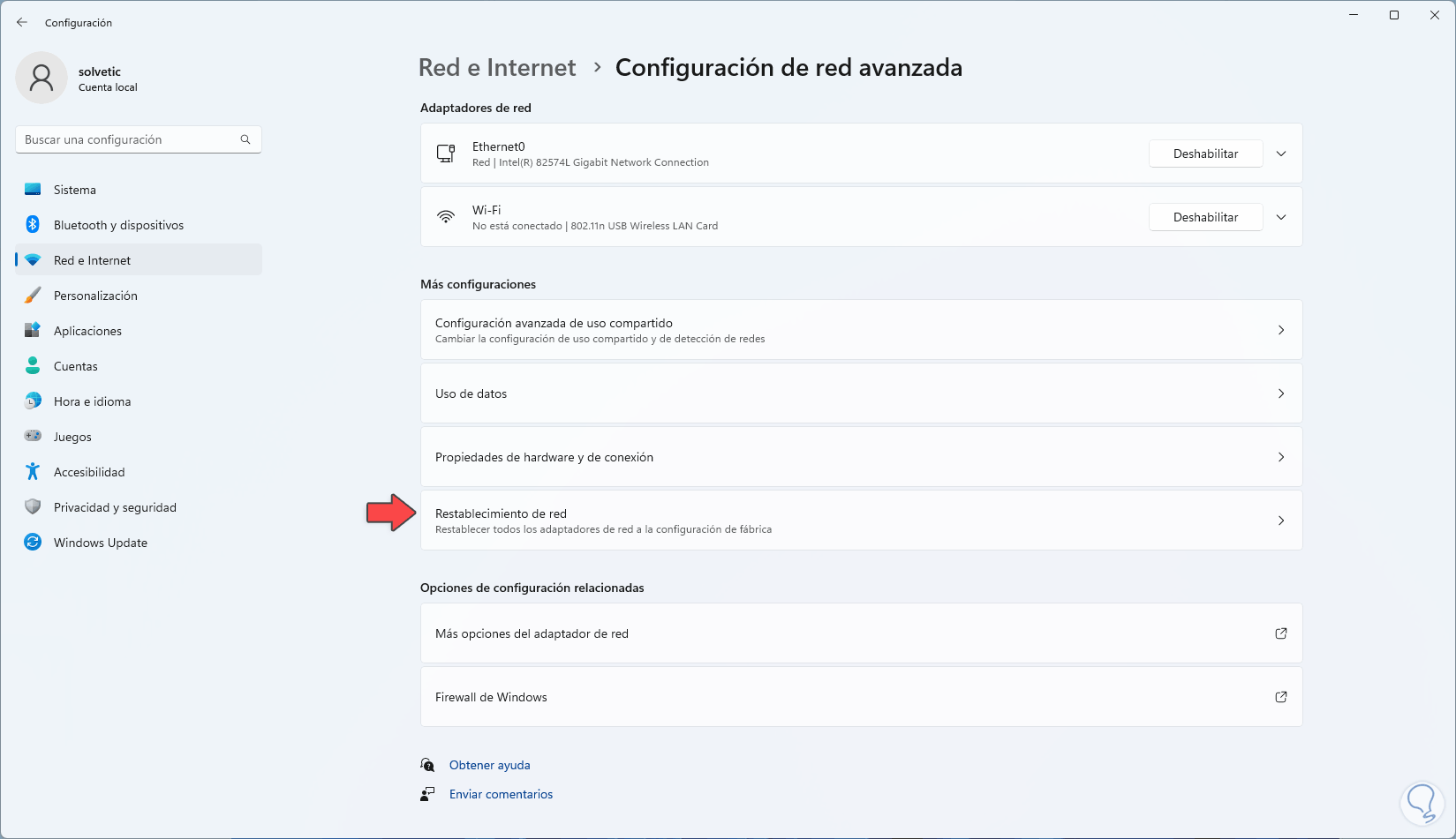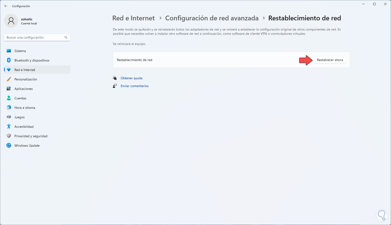Vamos a "Restablecimiento de red" para ver lo siguiente: