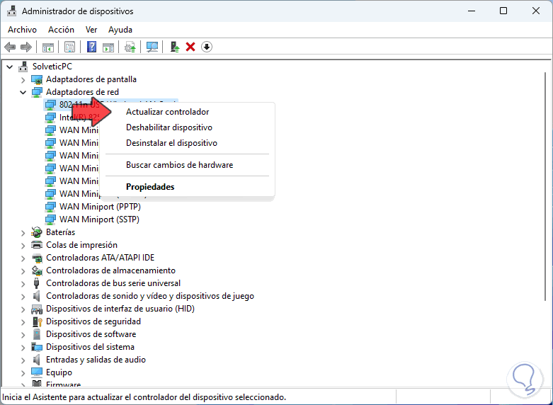 5. Reparar Redes WiFi Windows 11 Actualizando el controlador Wi-Fi