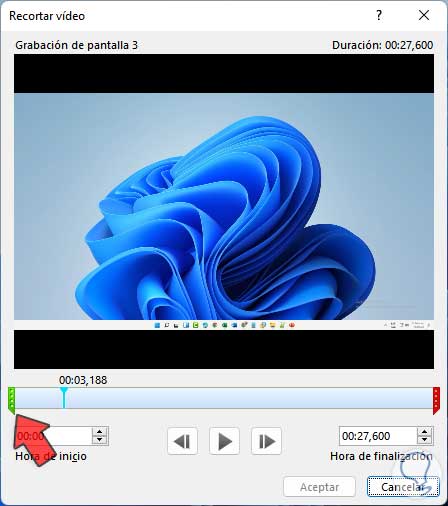 Establecemos el punto inicial y final del vídeo: