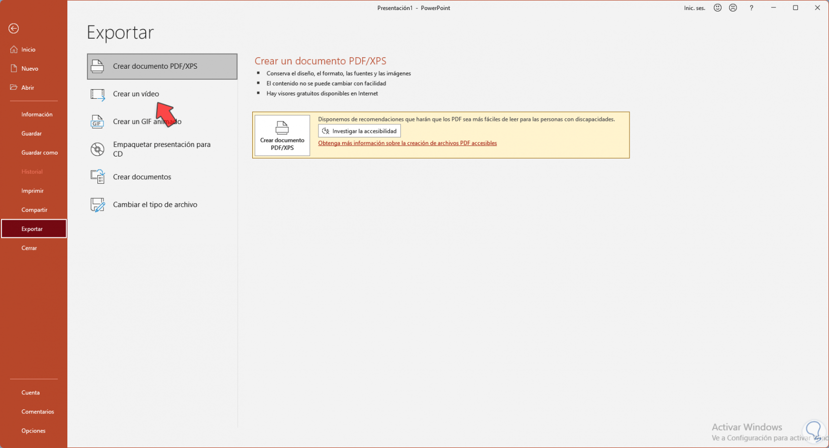 Damos clic en "Crear vídeo" y seleccionamos la ubicación donde se guardara: