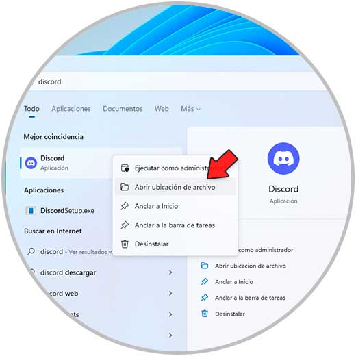 En el buscador de Inicio, damos clic derecho sobre el programa y seleccionamos "Abrir ubicación del archivo":