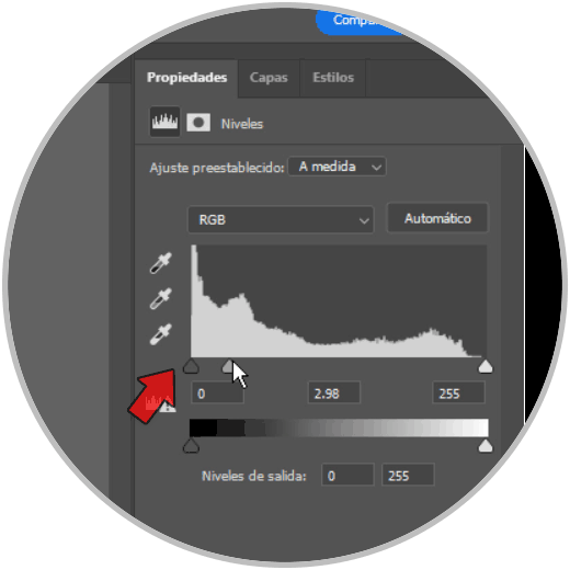En función de si nuestra imagen tiene demasiadas zonas quemadas o con luz, o bien zonas oscuras, desplazaremos ampliando el espectro a un lado u otro para recuperar información