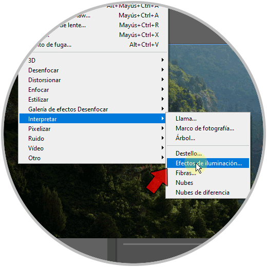Además de esto podríamos añadir Efectos de iluminación si vamos a "Filtro - Interpretar - Efectos de iluminación"