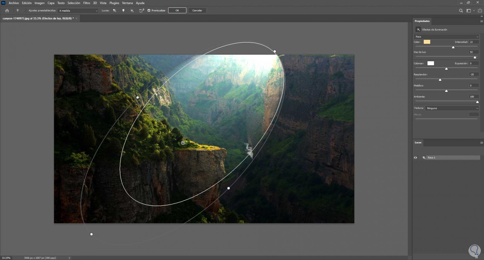 2 Cambiar la iluminación de una foto en Photoshop con Efectos