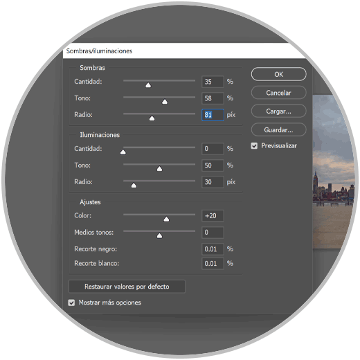 Aquí vamos a ir moviendo y jugando con las Sombras e Iluminaciones para ir dando más luz a nuestra imagen de una forma natural. También puedes modificar el parámetro del color e ir viendo el cambio.