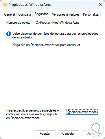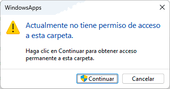 Cerramos las ventana y accedemos a la carpeta "WindowsApps", por seguridad veremos lo siguiente: