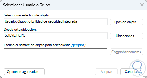 Damos clic en "Cambiar" en la sección "Propietario" para ver la siguiente ventana emergente: